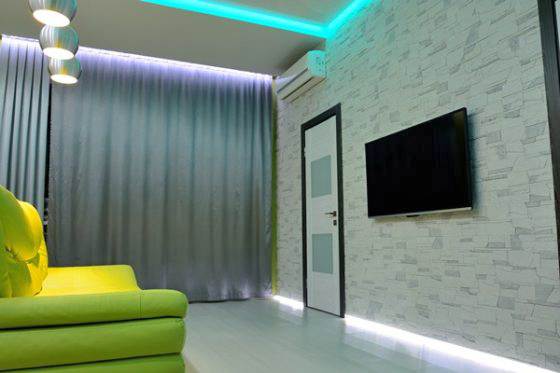 7. Degraus – uma solução bonita e muito útil, dando a esse recurso arquitetônico um status de design. A fita de LED pode ser usada em todos os tipos de ambiente. Tudo depende da imaginação. Numa escala maior, pode ser usada, inclusive, na fachada do prédio, mudando de cor, destacando a edificação.