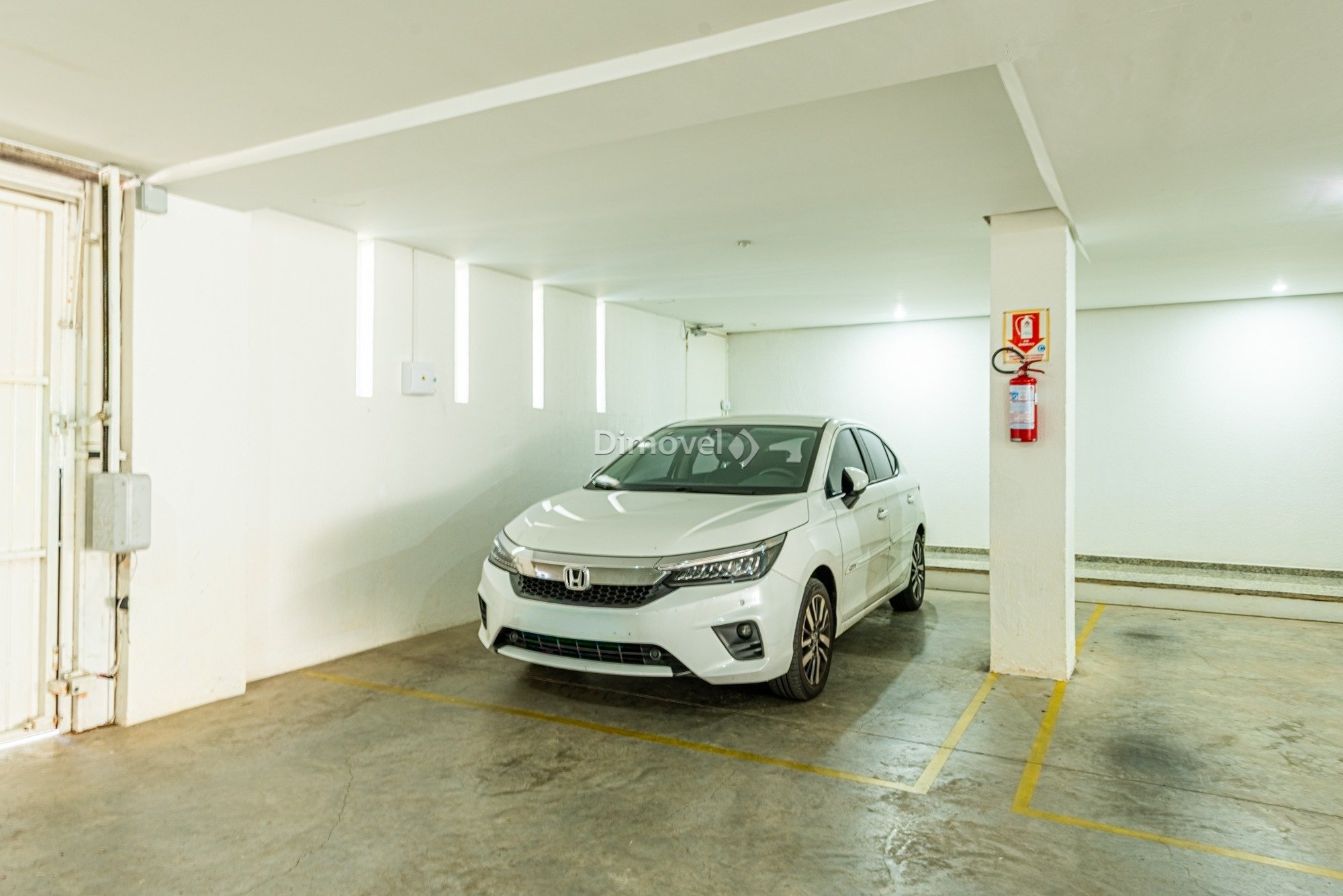 Uma vaga de garagem coberta e escriturada.