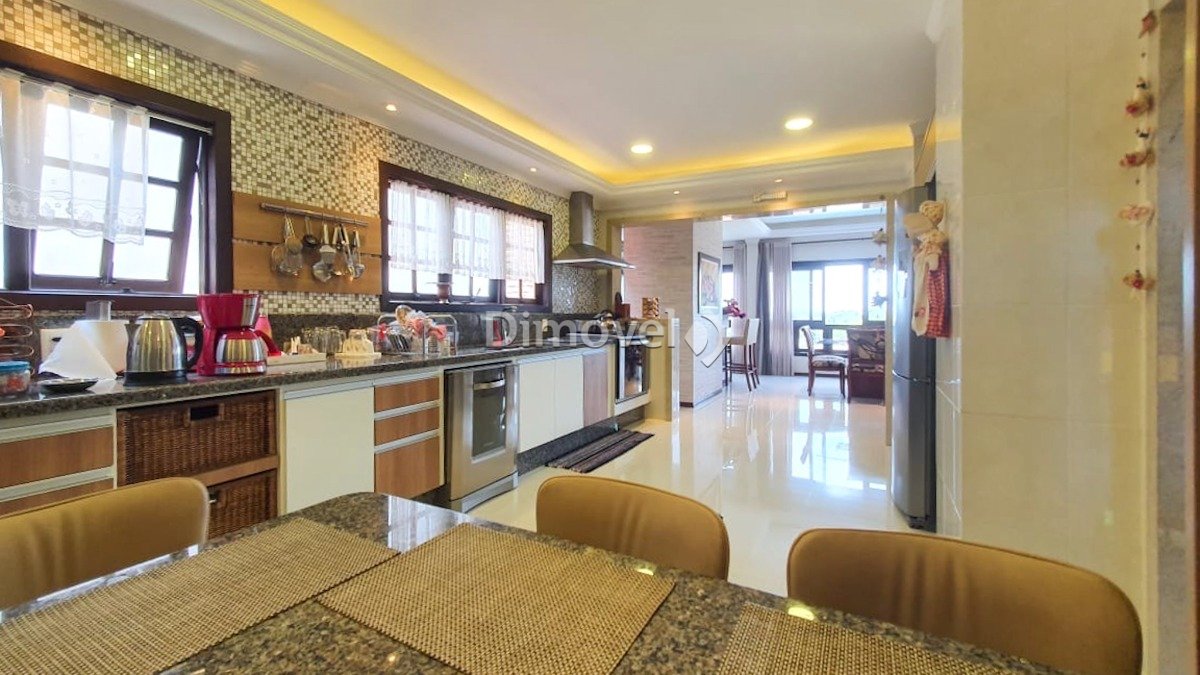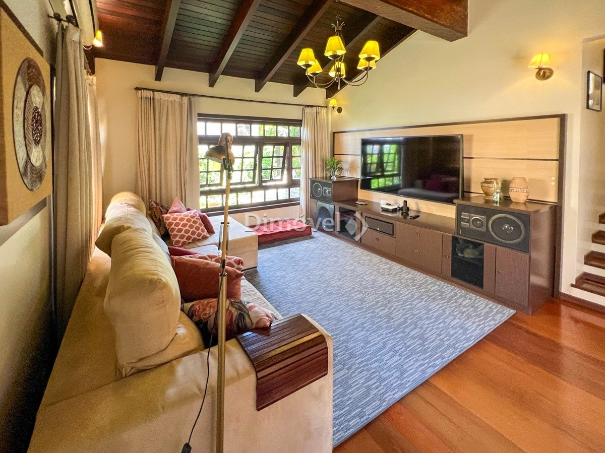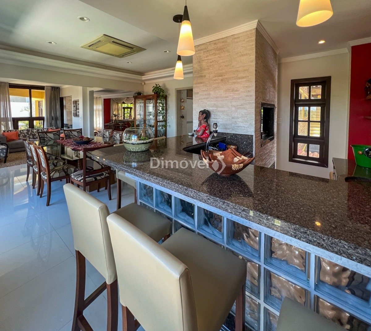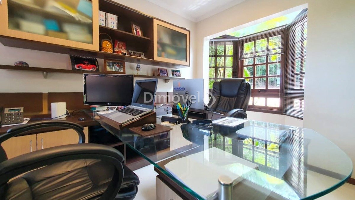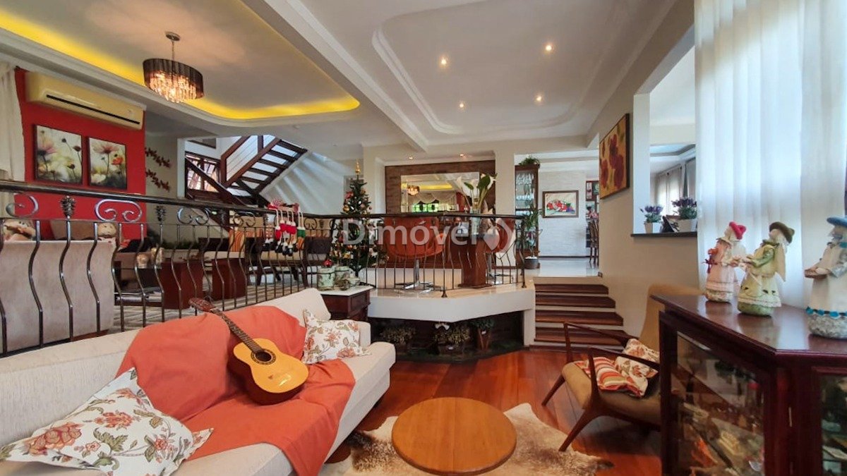 Com um total de 5 suítes, sendo uma suíte master com closet espaçoso, sacada privativa, banheira de hidromassagem, pias e box duplos, e as demais suítes com mezanino, esta residência proporciona a privacidade e o espaço que você e sua família merecem. O amplo living, com 4 ambientes e uma lareira acolhedora, cria um ambiente perfeito para receber e desfrutar momentos especiais. Além disso, você encontrará uma cozinha integrada com área de churrasqueira interna, sala de TV, escritório completo, lavanderia, ateliê, adega e sauna.