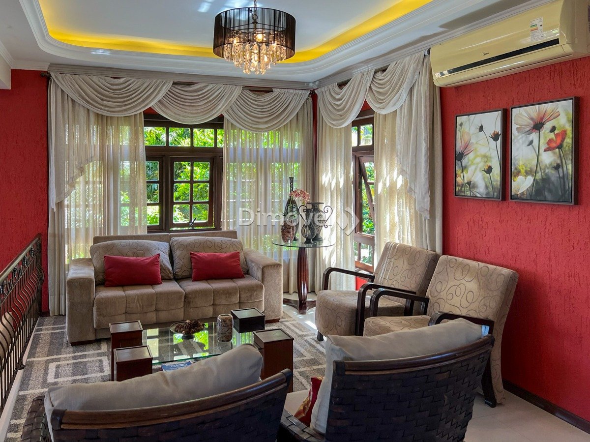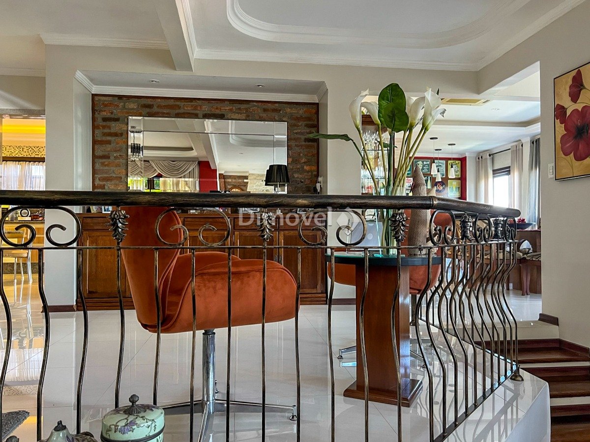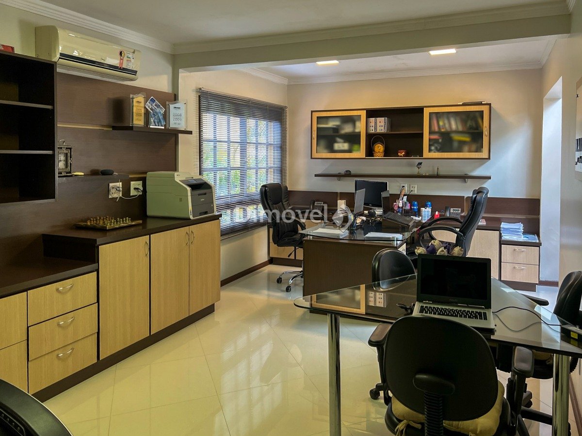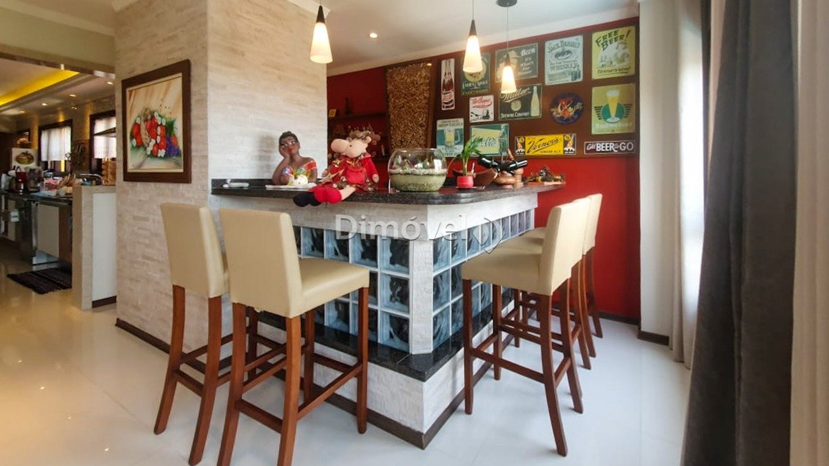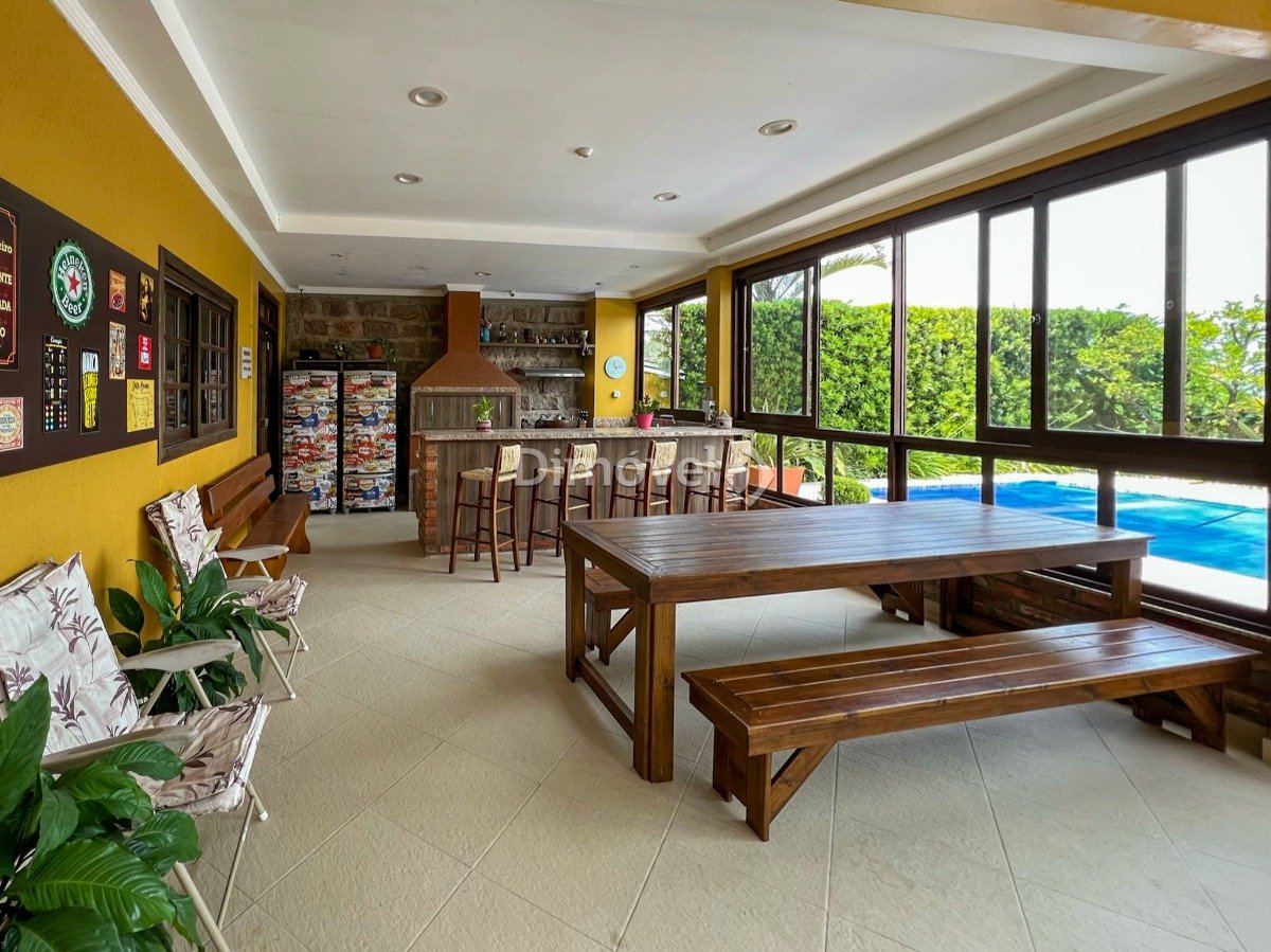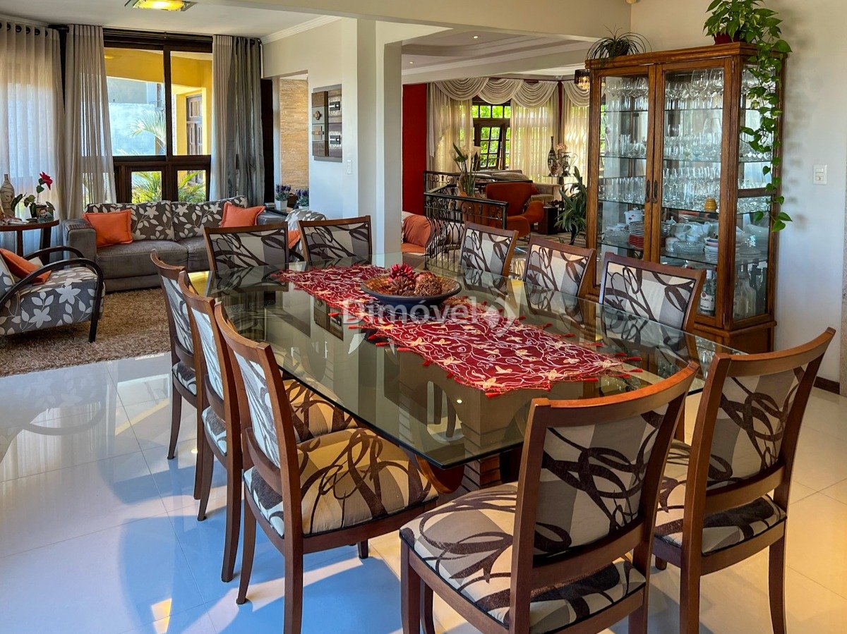 A residência conta ainda com um suntuoso salão de festas, projetado para acomodar confortavelmente 60 pessoas, equipado com um espaço gourmet e uma churrasqueira rotativa, perfeito para celebrar ocasiões memoráveis. A garagem acomoda até 4 veículos. A decoração refinada, com móveis sob medida, e o sistema de ar-condicionado em todos os ambientes, agregam ainda mais elegância e comodidade a esta casa espetacular.
