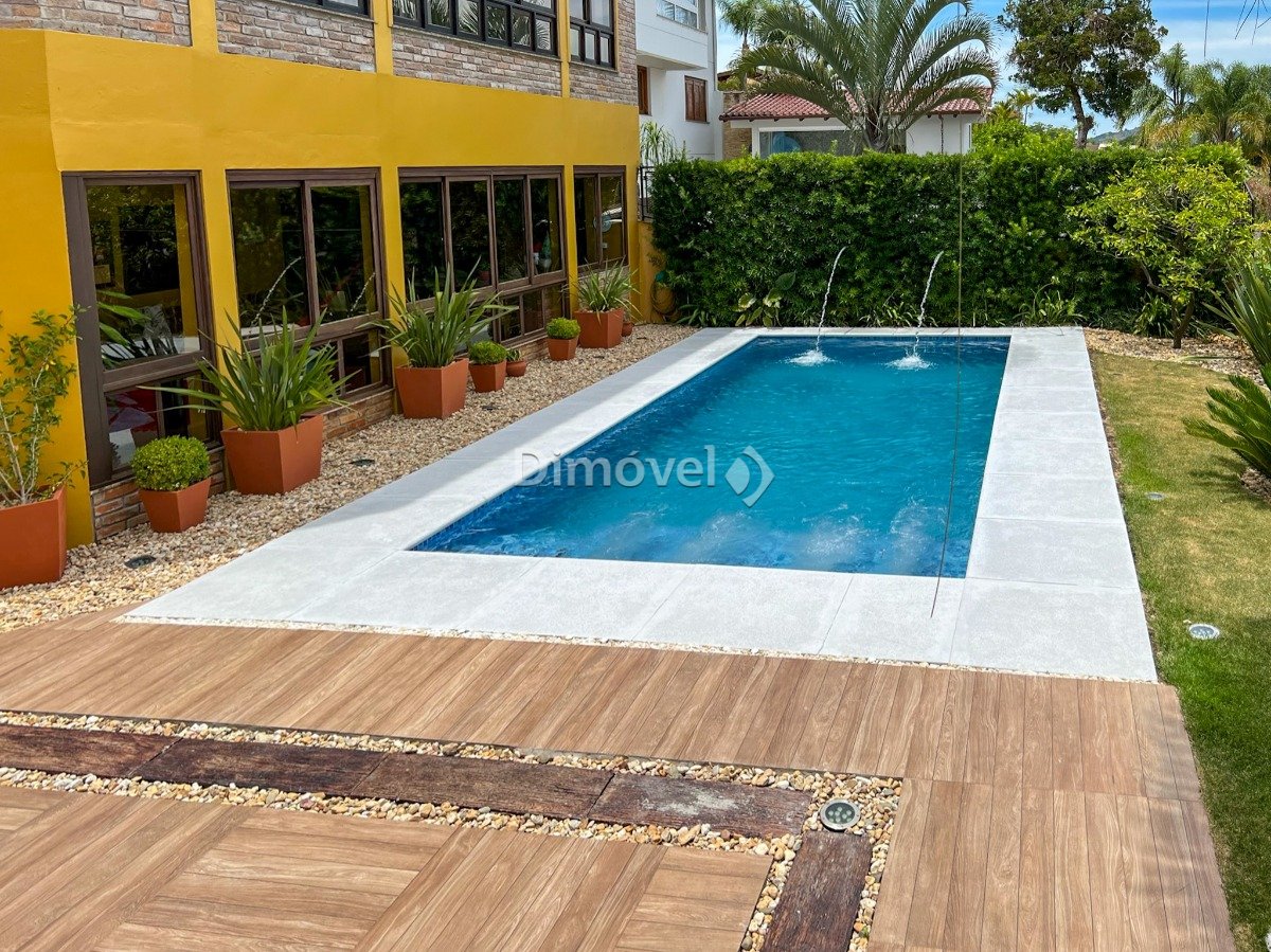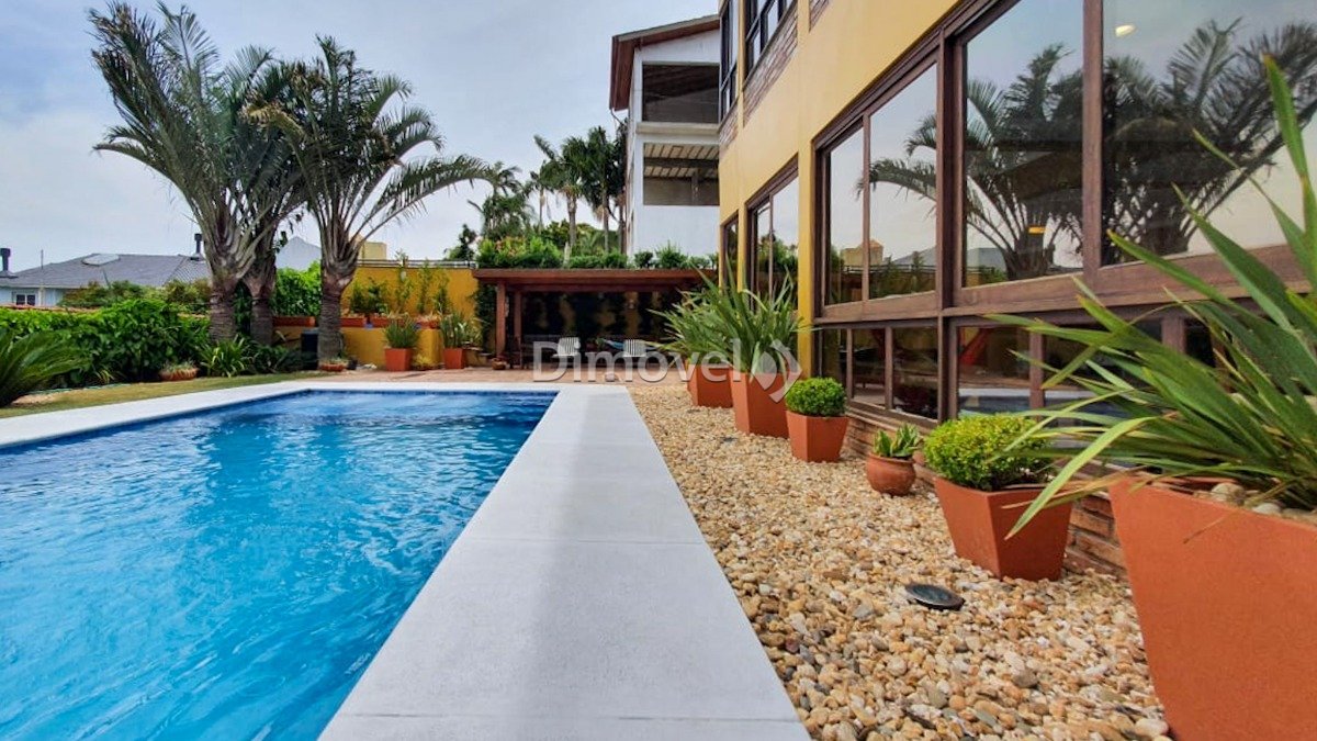 O pátio externo oferece uma piscina de concreto, de 4x9m, com água salgada, aquecimento, cascata e hidromassagem, proporcionando momentos de lazer e relaxamento em um ambiente paradisíaco. O pomar com árvores frutíferas, o paisagismo encantador, com um lindo pergolado e uma fonte com peixes, complementam a tranquilidade e beleza natural desta propriedade. E, claro, não podemos deixar de mencionar a energia fotovoltaica, automação, a segurança reforçada com sistema de câmeras e alarme monitorado, os 80m² de depósitos no subsolo e sótão, e a água filtrada e aquecida em todas as torneiras e chuveiros.